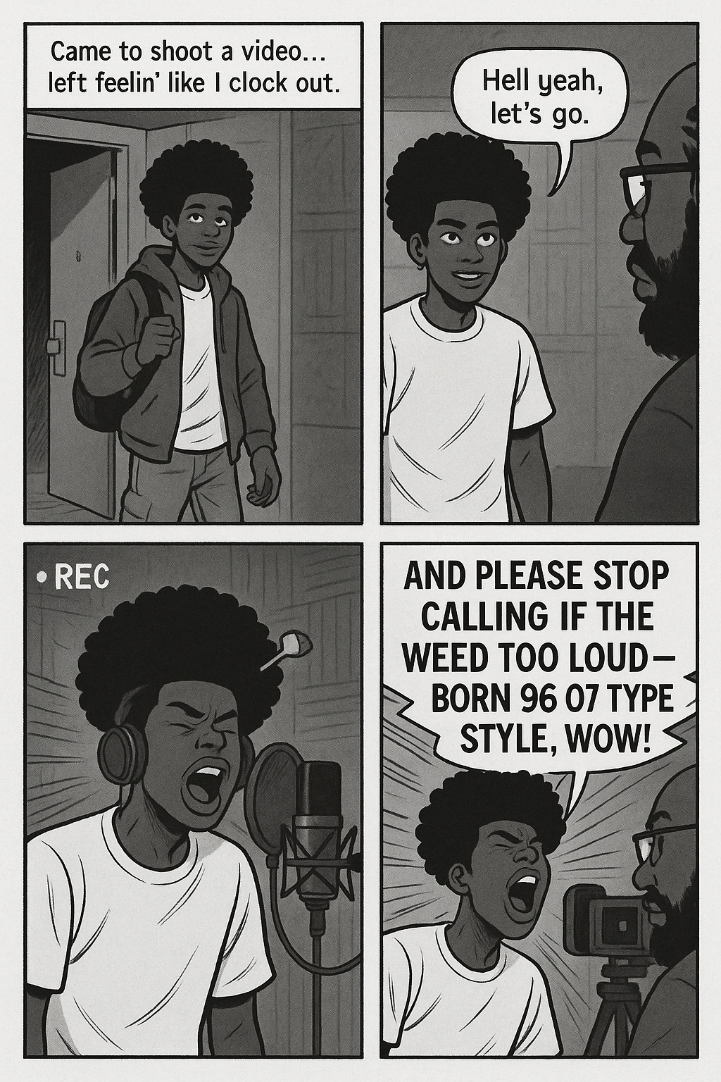 Our story starts with me going to a video shoot studio session with my engineer Aka Bully or sometimes I call him OG, he’s stern but always giving knowledge. As soon as I came in he start telling me how my last vid needed better production, and yadda yadda, I was not tryna hear it but I got respect for Og, so I listened. After the the speech he ask me was I ready to record, I answered with flaming confidence. “Hell yeah, lets go.” I started spazzing, we did take after take, it started to feel like work.