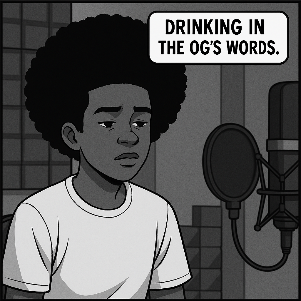 We shot scene after scene, take after take, and it was really me just spazzing. It felt like I was doing a relay race tournament, bra, I was done. We got to the third verse and I just kept messing up on it. I’ve been so busy with life I didn't have time to work on the verse, well recite it. But as A true mc thats a rookie mistake, and Og was sure to let me know.